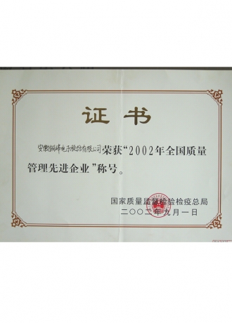 全國質量管理先進企業(yè)