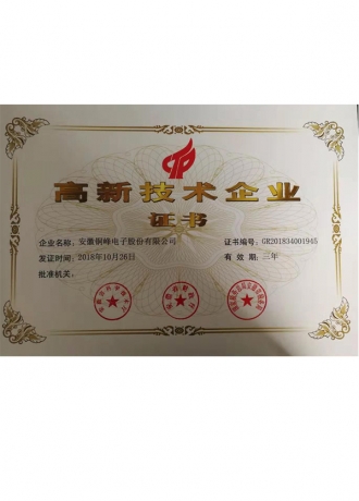 高新技術企業(yè)認定證書