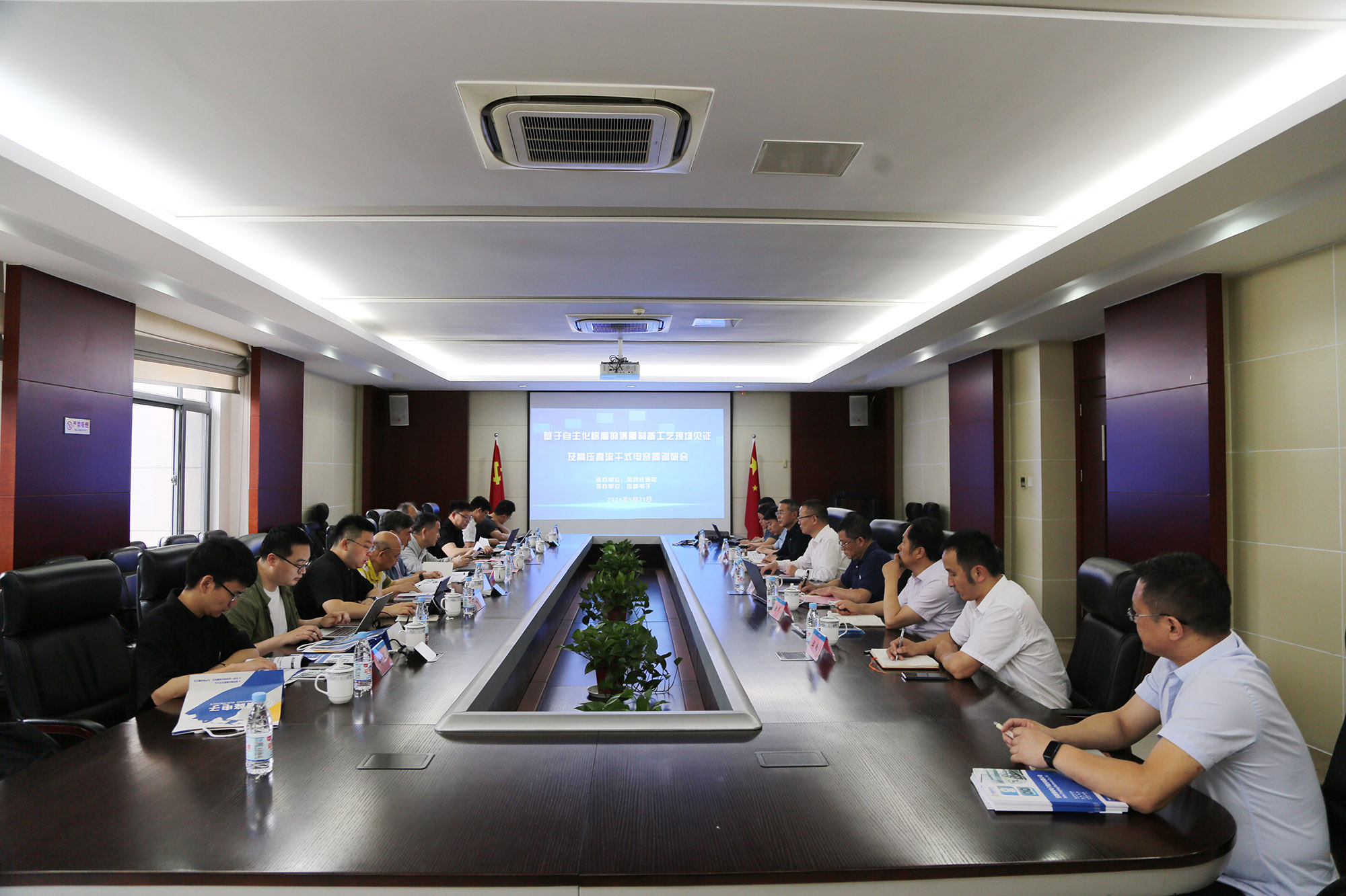 在首先舉行的項目進(jìn)展匯報會上,黃明強(qiáng)董事長致歡迎辭,對各位專家蒞臨指導(dǎo)表示熱烈的歡迎和衷心的感謝。黃明強(qiáng)指出,在柔直電容器國產(chǎn)化進(jìn)程中,銅峰公司充分發(fā)揮薄膜電容器一體化產(chǎn)業(yè)鏈的獨(dú)特優(yōu)勢,與國家電網(wǎng)、國內(nèi)知名高校院所和兄弟單位建立了深入的合作關(guān)系,通過持續(xù)技術(shù)創(chuàng)新,成功優(yōu)化了國產(chǎn)粒子薄膜的制備工藝,實現(xiàn)了柔直電容器全國產(chǎn)化的突破。公司將繼續(xù)與各合作方一道,堅定不移推進(jìn)項目研發(fā)進(jìn)程,早日實現(xiàn)柔直電容器及其介質(zhì)材料的國產(chǎn)化廣泛應(yīng)用,培養(yǎng)和鍛煉更多的產(chǎn)業(yè)鏈技術(shù)人才,不斷提升企業(yè)的技術(shù)創(chuàng)新能力和核心競爭力,為我國的薄膜電容器產(chǎn)業(yè)貢獻(xiàn)自己的力量。