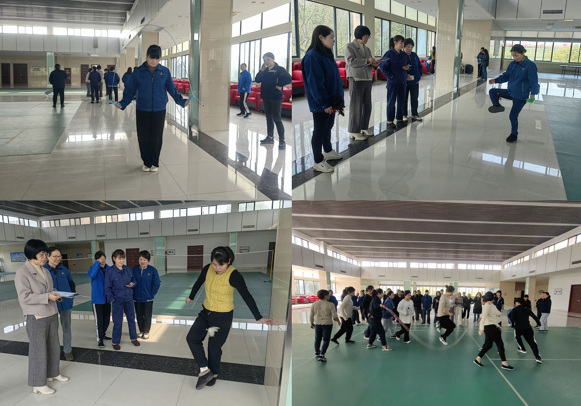 當(dāng)日上午,女工文體活動(dòng)在一片熱烈的氛圍中拉開(kāi)帷幕,吸引了來(lái)自公司機(jī)關(guān)及生產(chǎn)一線的 50 余名女職工踴躍參與。在單人跳繩比賽中,女職工們身輕如燕,腳尖快速點(diǎn)地,跳繩在她們手中飛速旋轉(zhuǎn),令人目不暇接,現(xiàn)場(chǎng)歡聲笑語(yǔ)此起彼伏。踢毽子比賽同樣精彩紛呈,大家各顯神通,毽子在她們腳邊有節(jié)奏地跳動(dòng),展現(xiàn)出靈動(dòng)的身姿。而 “十人八字” 集體跳繩項(xiàng)目更是將活動(dòng)推向高潮。隨著裁判一聲令下,跳繩比賽正式開(kāi)始,兩位甩繩選手動(dòng)作整齊劃一,一根長(zhǎng)繩快速旋轉(zhuǎn),隊(duì)員們依次進(jìn)入跳繩區(qū)完成跳躍。這一項(xiàng)目不僅考驗(yàn)個(gè)人的反應(yīng)速度與身體協(xié)調(diào)性,更需要團(tuán)隊(duì)之間的默契配合,充分展現(xiàn)了女職工們團(tuán)結(jié)拼搏的精神風(fēng)貌。